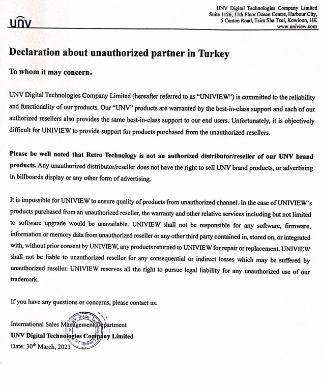 Declaration about unauthorized partner in Turkey