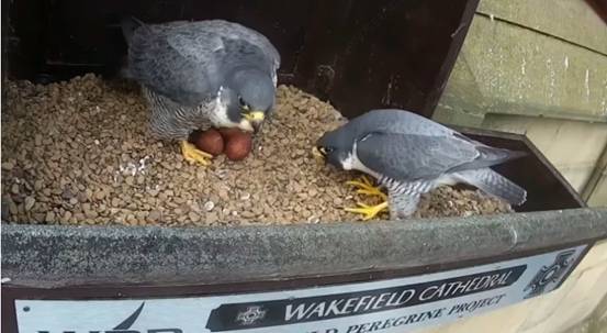 Francis Hickenbottom, who is part of the Wakefield Peregrine Project, said that the birds’ eggs are expected to hatch at the end of April.
