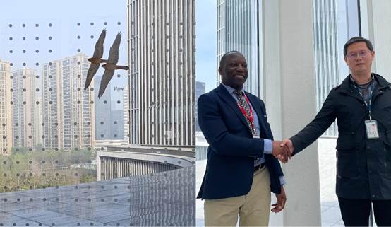 Dr. Kamil's first visit to Hangzhou in March 2024 coincided with the blossoming of spring, filling the Uniview headquarters with the fragrance of flowers and the chirping of birds. Beneath the glass curtain wall of the R&D building's fourth floor, he joined Dr. Zhou Di, director of the Uniview Research Institute, in applying bird collision prevention stickers. Engineers aimed to alter the fate of birds colliding with glass.