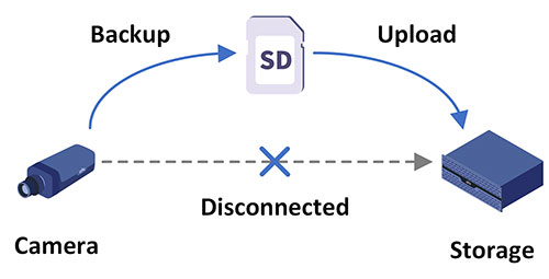 UNV cameras can automatically store video recordings into camera’s SD card when network is disconnected. Once the network is restored, the video recordings will be sent back to storage server. Thus, all of video recordings would be saved even network fails temporarily.