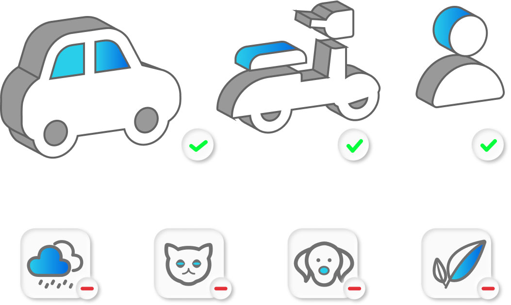 당사 알고리즘은 탐지 대상을 인식하여 대상을 사람, 비전동 차량, 차량으로 분류할 수 있습니다.